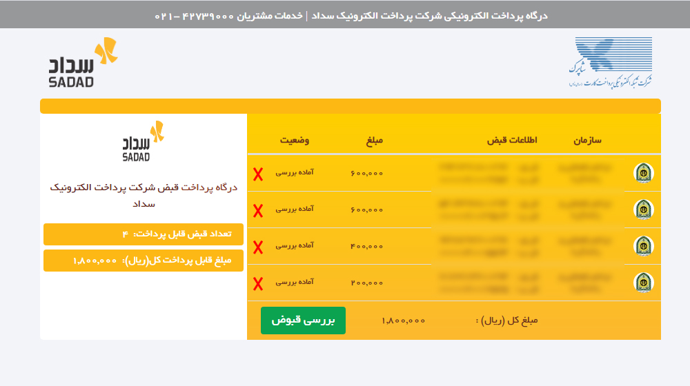 6. با ورود به صفحه جدید، بررسی قبوض را انتخاب کنید. پس از آن نمایش اقلام را انتخاب کنید.