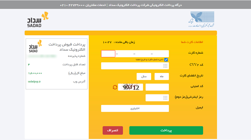 8. با انتخاب پرداخت به شیوه رمز پویا یا رمز ایستا با وارد کردن اطلاعات کارت بانکی پرداخت خود را تکمیل کنید.
