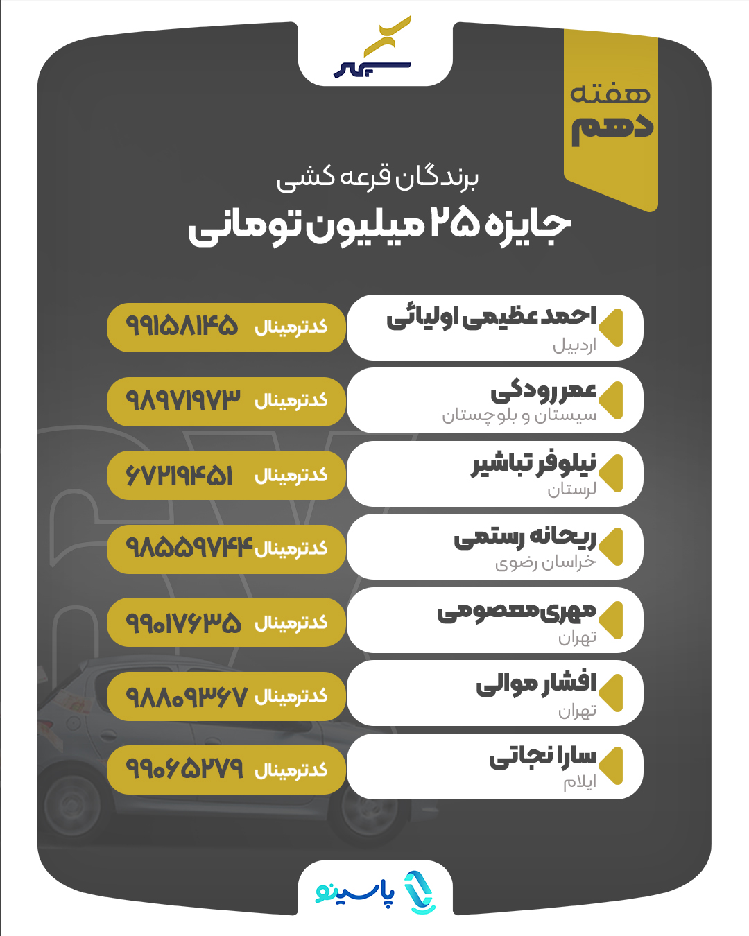 برندگان دهمین قرعه‌کشی جشنواره شانس انفجاری سپهر مشخص شدند