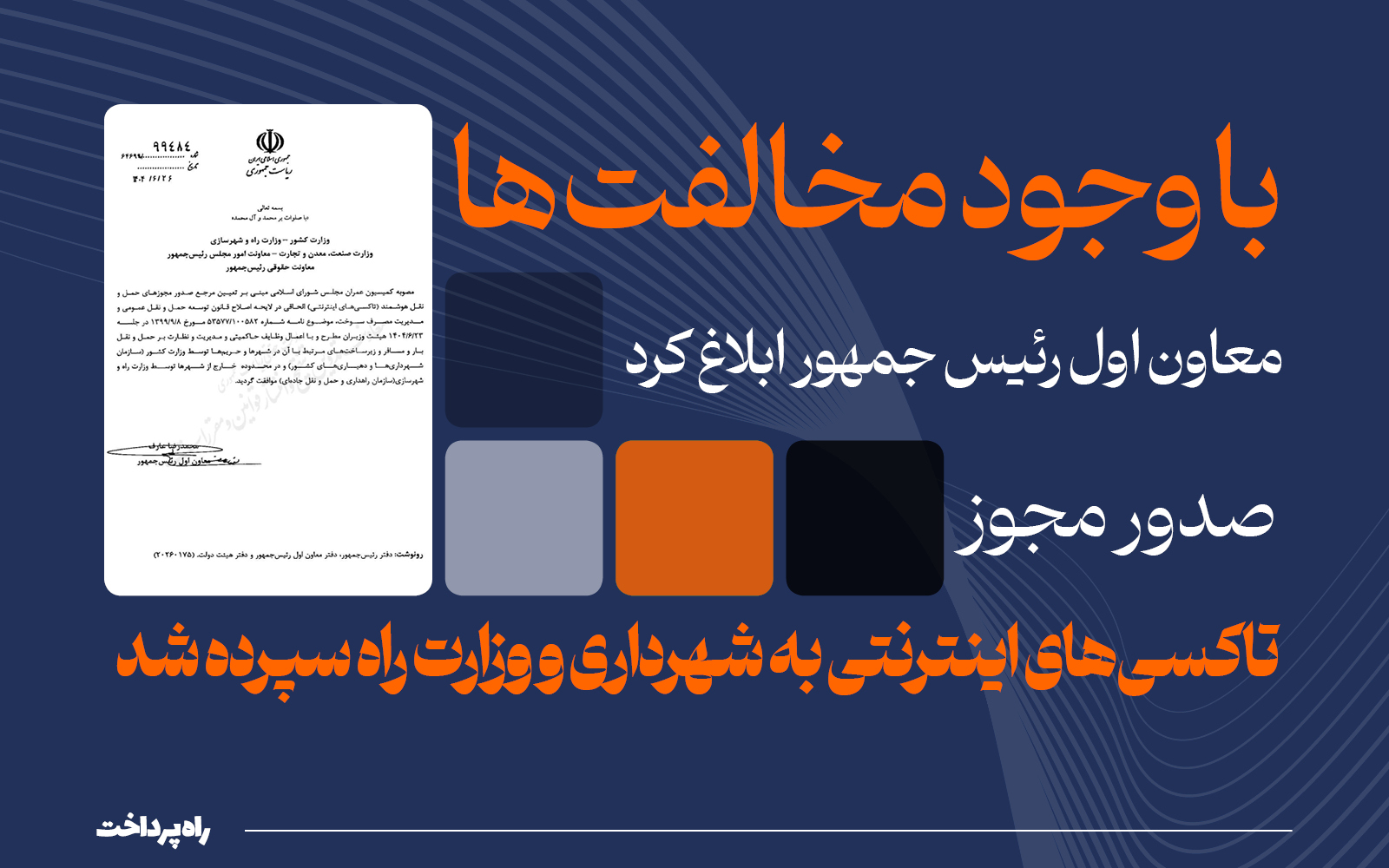 این تصمیم نهایی معاون اول رئیسجمهور پس از یک دوره طولانی از کشمکشها و مخالفتهای گسترده با تغییر مرجع صدور مجوز به تاکسیهای اینترنتی اتخاذ شد.