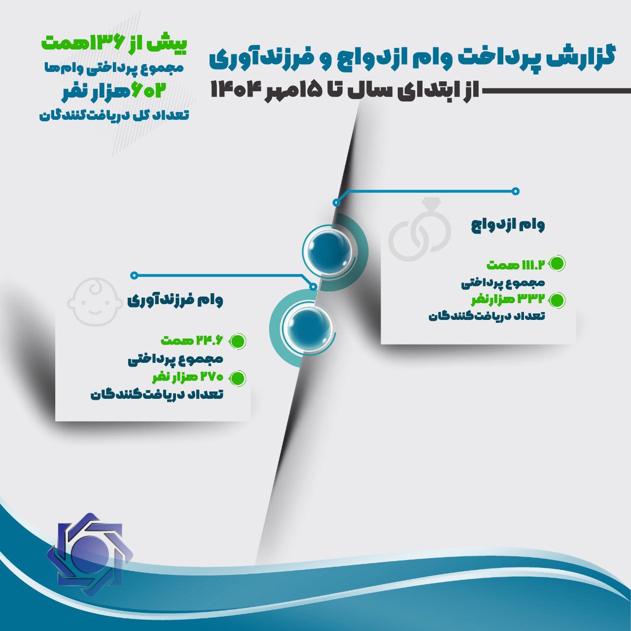 با تمهیدات بانک مرکزی در تسریع و تسهیل پرداخت تسهیلات تکلیفی، شبکه بانکی کشور از ابتدای سال جاری تا ۱۵ مهرماه، بیش از ۱۳۶ هزار میلیارد تومان تسهیلات قرض‌الحسنه ازدواج و فرزندآوری به متقاضیان پرداخت کرده است. در این مدت، ۶۰۲ هزار نفر موفق به دریافت وام خود شده‌اند.