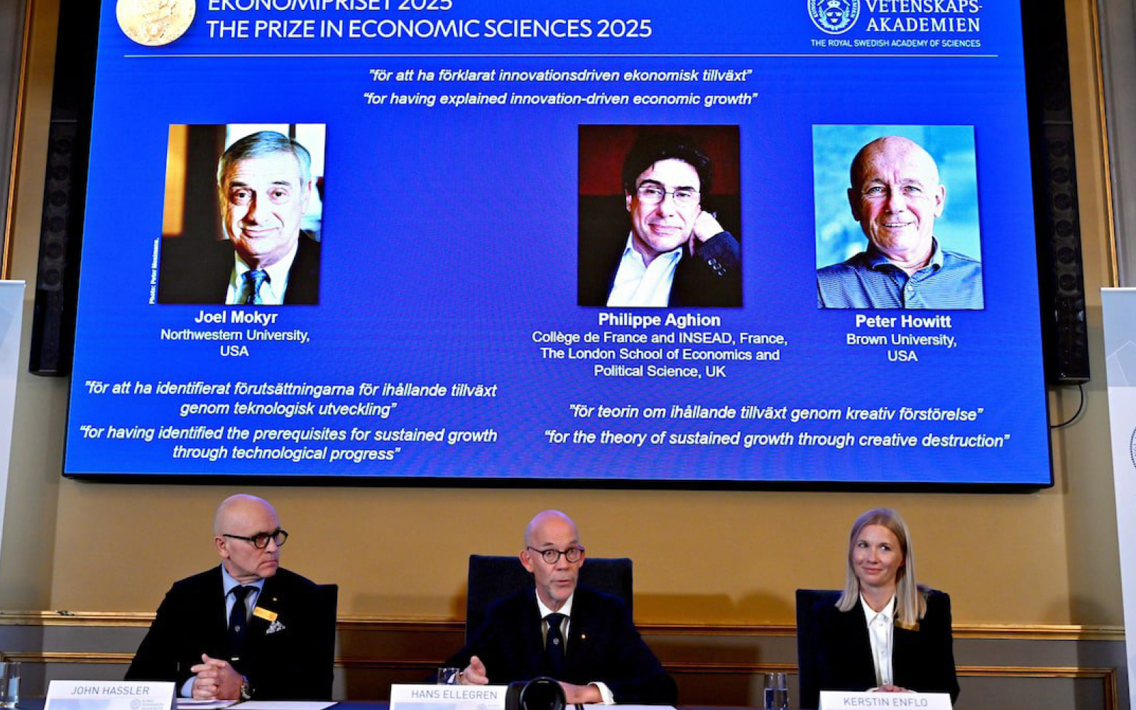 آکادمی سلطنتی علوم سوئد اعلام کرد جایزه نوبل علوم اقتصادی سال ۲۰۲۵ به جوئل موکیر، فیلیپ آغیون و پیتر هاویت تعلق گرفته است. این سه اقتصاددان به دلیل پژوهشهای تأثیرگذار خود درباره نقش نوآوری و مفهوم «تخریب خلاق» در رشد پایدار اقتصادی، شایسته دریافت این جایزه شناخته شدند.