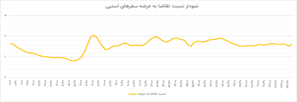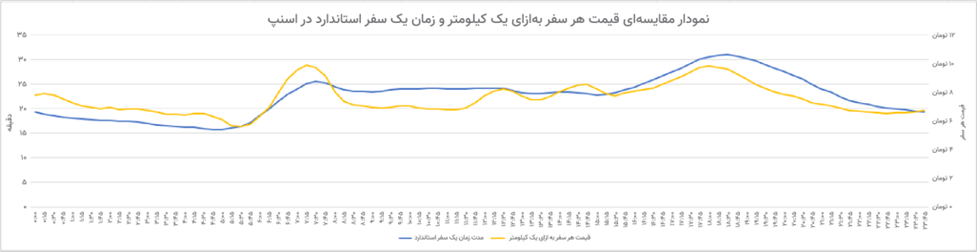 تحلیل نسبت تقاضا به عرضه نشان میدهد که مانند سال گذشته، نرخ تقاضا در ساعات ابتدایی روز سریعتر از عصر افزایش مییابد، اما در ساعات پرتردد عصر مدتزمان صرف شده در ترافیک بیشتر است. به این معنی که عامل اصلی نوسان قیمتی سفرها در ساعات صبح به نسبت تقاضا به عرضه و در ساعات عصر بیشتر به حجم بالای ترافیک برمیگردد.