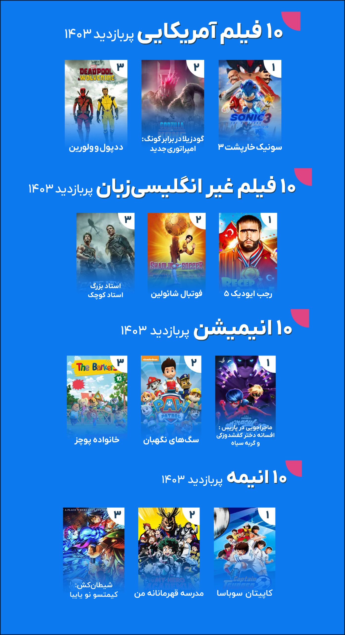 پربازدیدترین فیلم‌ها، انیمیشن‌ها و انیمه‌ها در سال ۱۴۰۳