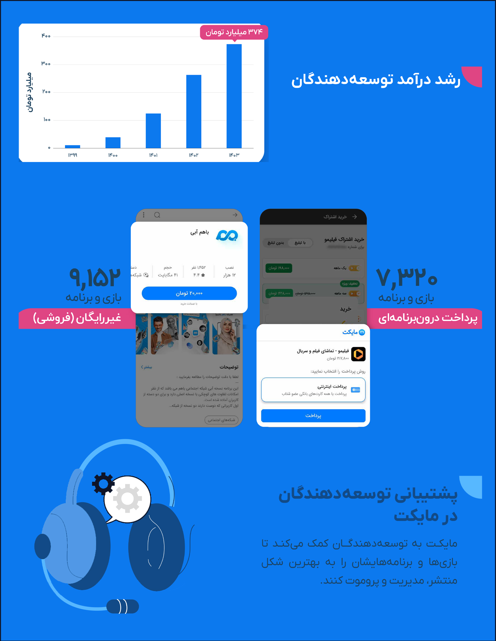 توسعه‌دهندگان فعال و درآمدهای مایکت در سال ۱۴۰۳
