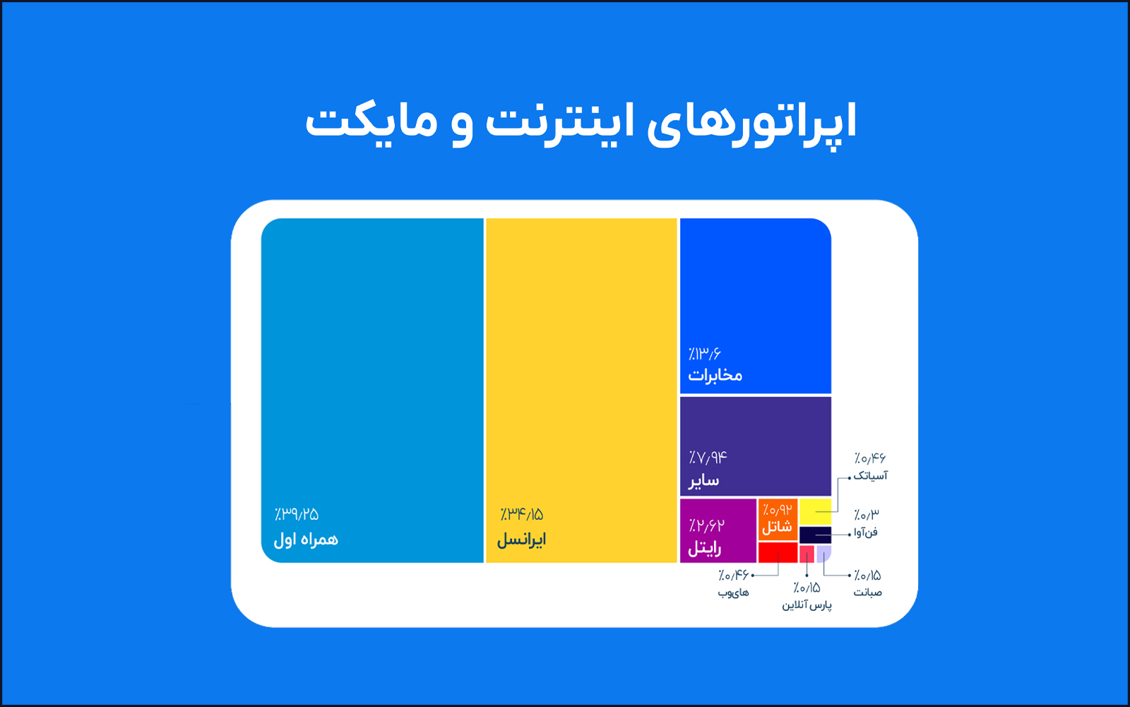 در سال ۱۴۰۳، کاربران مایکت برای دانلود و استفاده از بازی و برنامه‌ها از اپراتورهای مختلف اینترنت استفاده کردند که سهم هر کدام شامل همراه اول با ۳۹.۲۵ درصد، ایرانسل با ۳۴.۱۵ درصد، مخابرات با ۱۳.۶ درصد، سایر اپراتورها با ۷.۹۴ درصد، رایتل با ۲.۶۲ درصد، شاتل با ۰.۹۲ درصد، های وب با ۰.۴۶ درصد، پارس آنلاین با ۰.۱۵ درصد، آسیاتک با ۰.۴۶ درصد، فن‌آوا با ۰.۳ درصد و صبانت با ۰.۱۵ درصد بود.