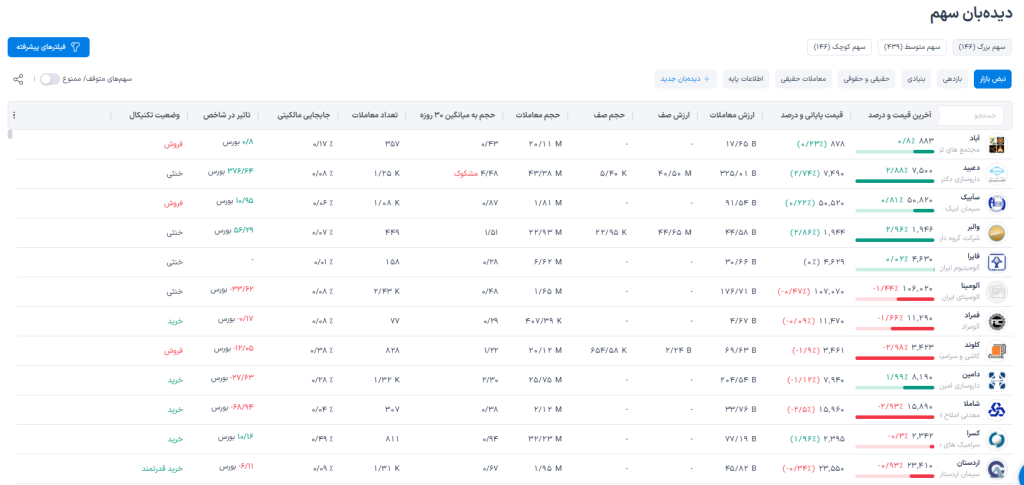 بخش سهام؛ فیلتر، مقایسه و تحلیل تمامی نمادها