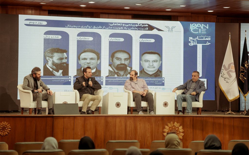 نشست دوم روز دوم با عنوان «هنر الگوریتمی و تعاملی؛ قدرتبخشی به هویت ملی از طریق نوآوری دیجیتال» برگزار شد. در این نشست حسین محسنی، مدیرعامل آرتیشن؛ مهدی شوندی، فواد نجمالدین و امیرحسین روشنضمیر درباره پیوند میان هنر و تکنولوژی سخن گفتند. محسنی تأکید کرد که «نوآوری در هنر دیجیتال زمانی معنا دارد که مخاطب از تماشاگر به مشارکتکننده تبدیل شود.»