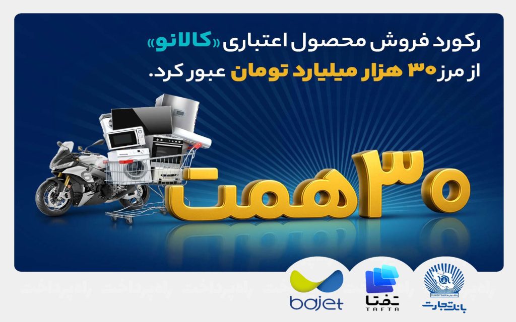 رکورد فروش محصول اعتباری کالانو بانک تجارت از مرز ۳۰ هزار میلیارد تومان عبور کرد