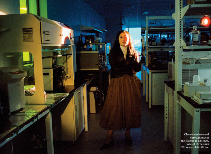 مؤسسه CZI Institute for Advanced Biological Imaging در ردوود سیتی کالیفرنیا، یکی از چهار مؤسسهای است که پاییز امسال توسط چان و زاکربرگ افتتاح شد. CZI کار خود را به سه بخش تقسیم میکند: تحقیقات پایه؛ نوآوری تکنولوژیک (از جمله هوش مصنوعی)؛ و پروژههای زیستپزشکی. چان همچنین بر مراکز دیگری نظارت دارد مانند BiaLabs در سانفرانسیسکو، شیکاگو و نیویورک که روی ایمنی، سیستمهای سلولی و دیگر جنبههای زیستپزشکی تحقیق میکنند.