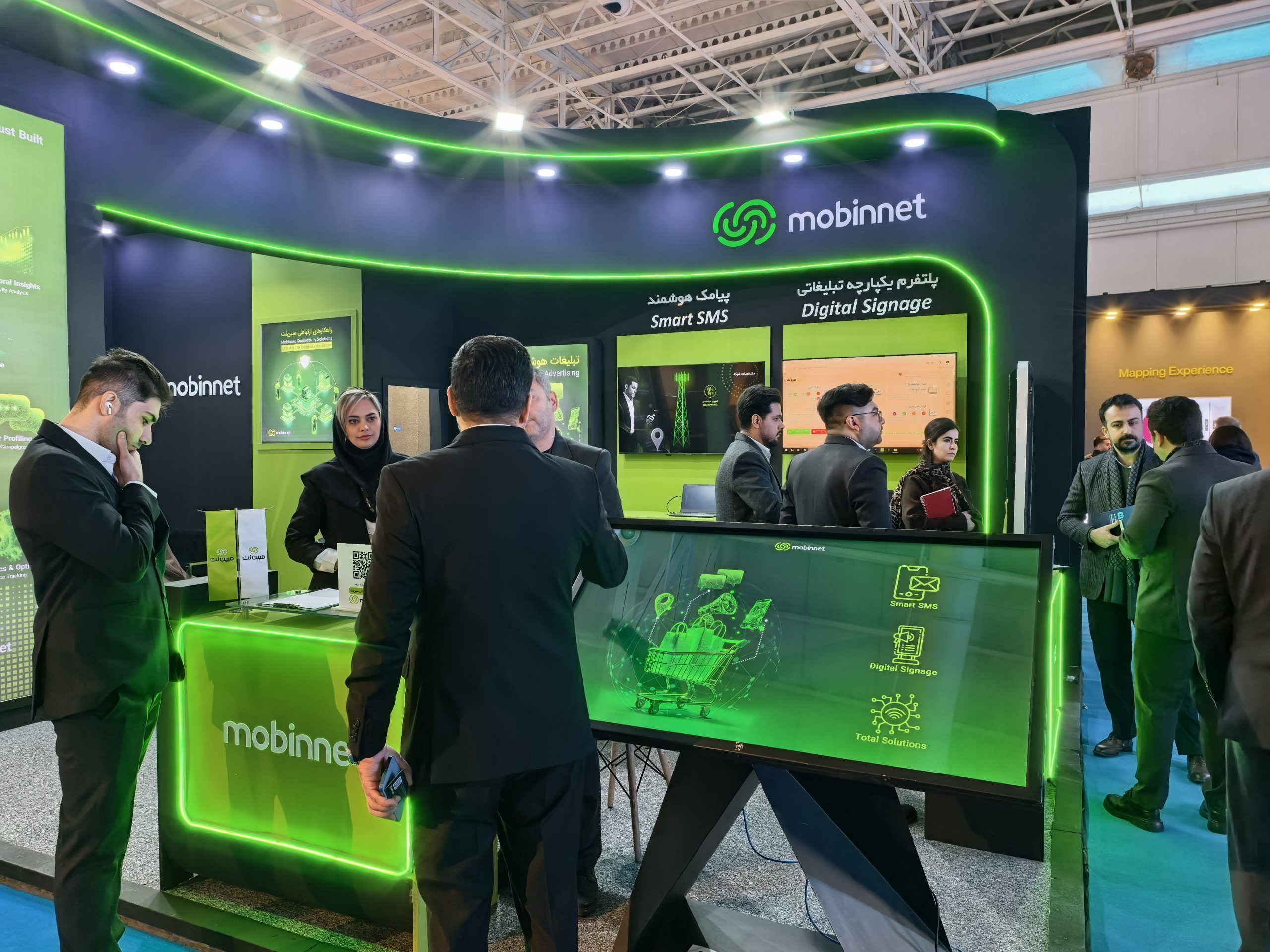 مبین‌نت در این نمایشگاه به معرفی مجموعه‌ای از راهکارهای ارتباطی و بازاریابی هوشمند متناسب با نیاز صنایع خرده‌فروشی و مراکز خرید می‌پردازد. در این سبد، سرویس پیامک هوشمند به‌عنوان ابزاری برای ارتباط هدفمند با مشتریان طراحی شده که امکان ارسال پیامک‌های مکان‌محور، رفتاری و مبتنی بر سناریوهای مختلف را فراهم می‌کند. این سرویس به کسب‌وکارها کمک می‌کند کمپین‌های شخصی‌سازی‌شده اجرا کرده، اثربخشی ارتباطات بازاریابی را افزایش دهند و با استفاده از گزارش‌ها و تحلیل داده‌ها، تصمیم‌گیری دقیق‌تری داشته باشند.