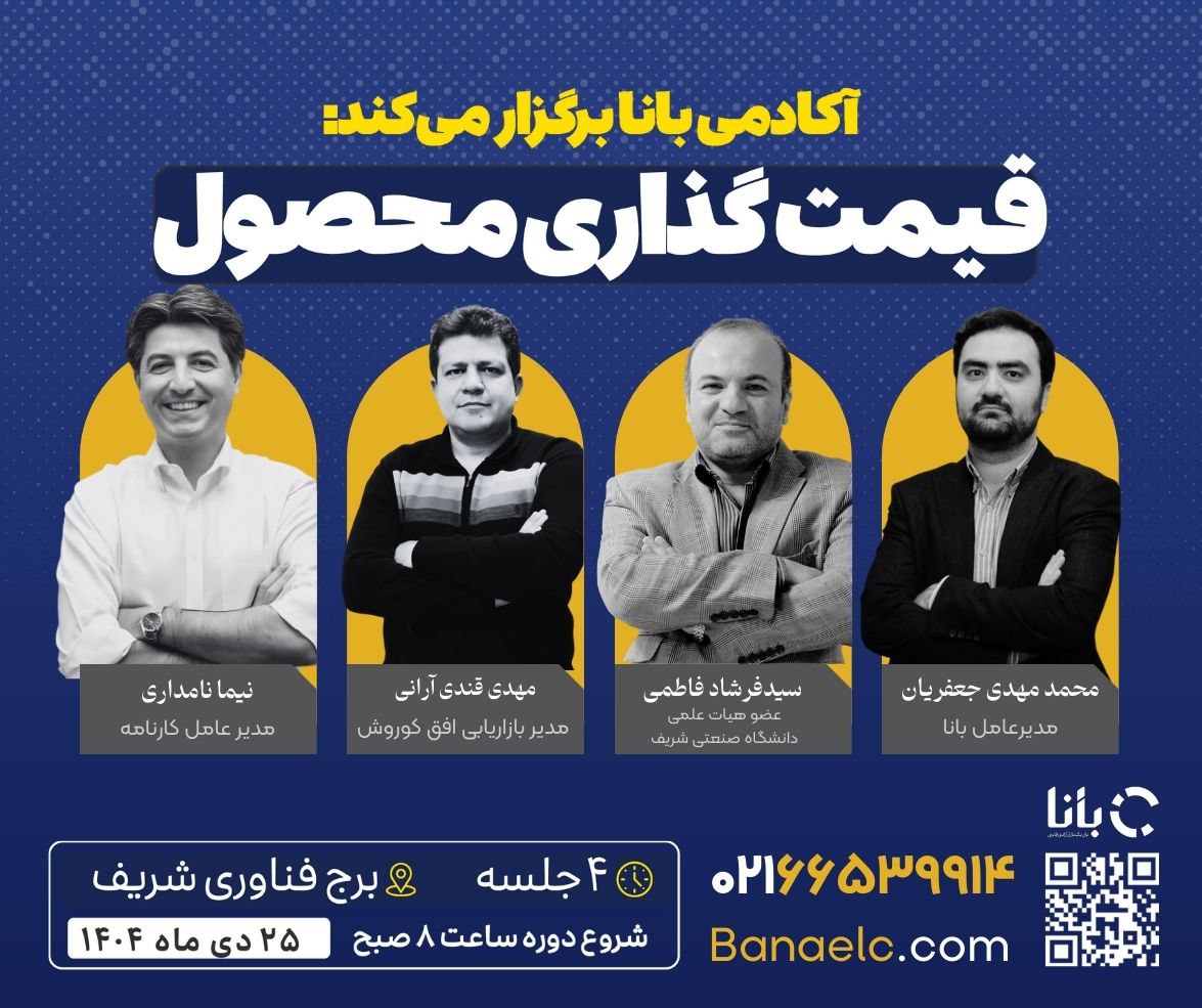 آکادمی بانا دوره تخصصی «قیمتگذاری محصول» را با هدف ارتقای دانش حرفهای مدیران و فعالان کسبوکار برگزار میکند. این دوره با تمرکز بر مدلهای علمی و کاربردی قیمتگذاری، به بررسی ابعاد هزینه، مشتری و رقابت در تعیین قیمت محصولات و خدمات میپردازد و تلاش دارد تجربههای عملی صنعت را در کنار مبانی نظری در اختیار شرکتکنندگان قرار دهد.