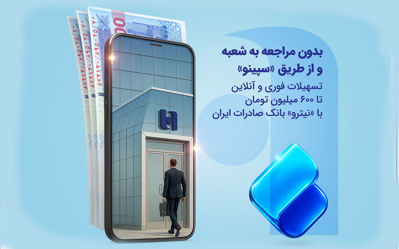 بانک صادرات ایران با اجرای طرح تسهیلاتی «نیترو»، امکان دریافت تسهیلات کاملاً غیرحضوری را برای مشتریان حقیقی فراهم کرده است. در قالب این طرح، متقاضیان میتوانند با افتتاح حساب و سپردهگذاری حداقل یکماهه در نئوبانک صادرات ایران «سپینو»، بین ۸۰ تا ۴۰۰ درصد میانگین موجودی خود و تا سقف شش میلیارد ریال تسهیلات دریافت کنند.
