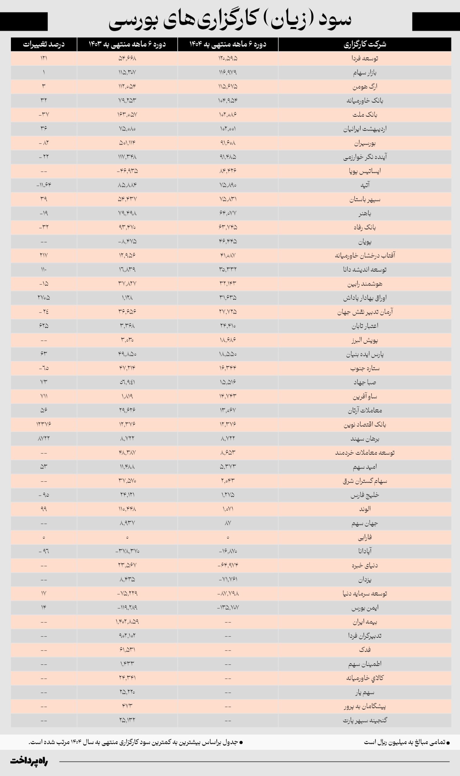 همچنین برخی کارگزاریها فاقد اطلاعات مربوط به سود سرمایهگذاری در بازه مورد نظر بودند که در ستون مربوطه جدول با علامت خط تیره مشخص شدهاند.