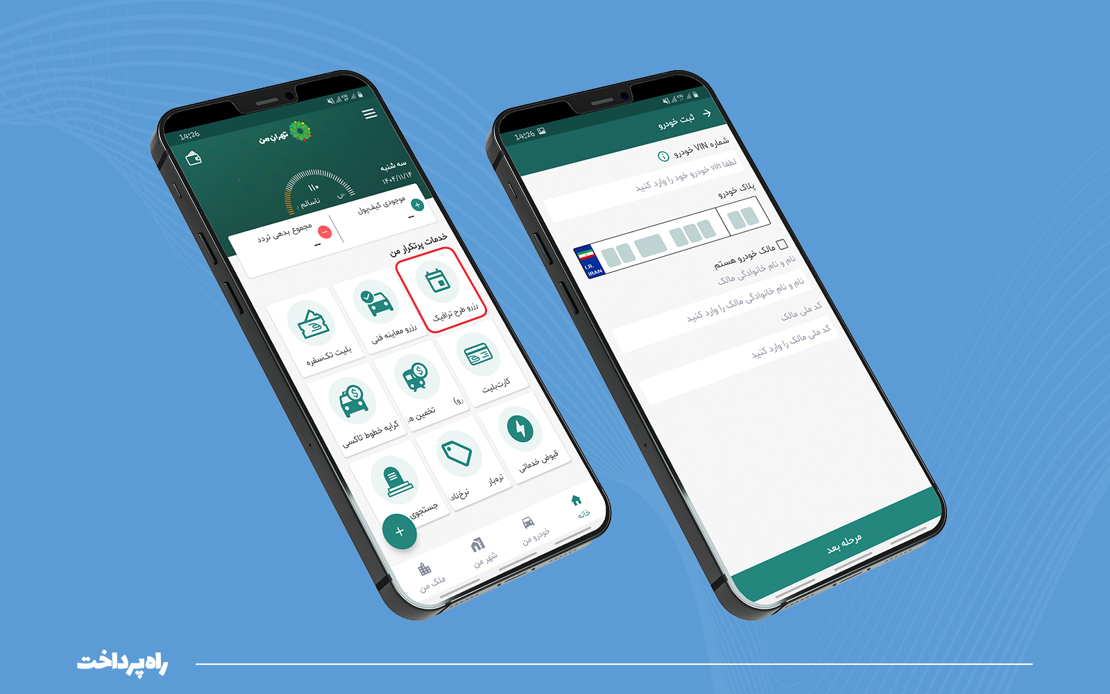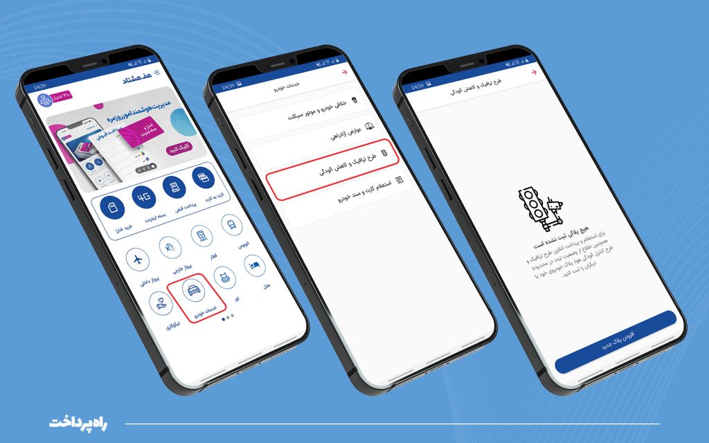 در ادامه با انتخاب گزینه «طرح ترافیک» و وارد کردن پلاک خودرو میتوان فرایند طرح ترافیک را کامل کرد.