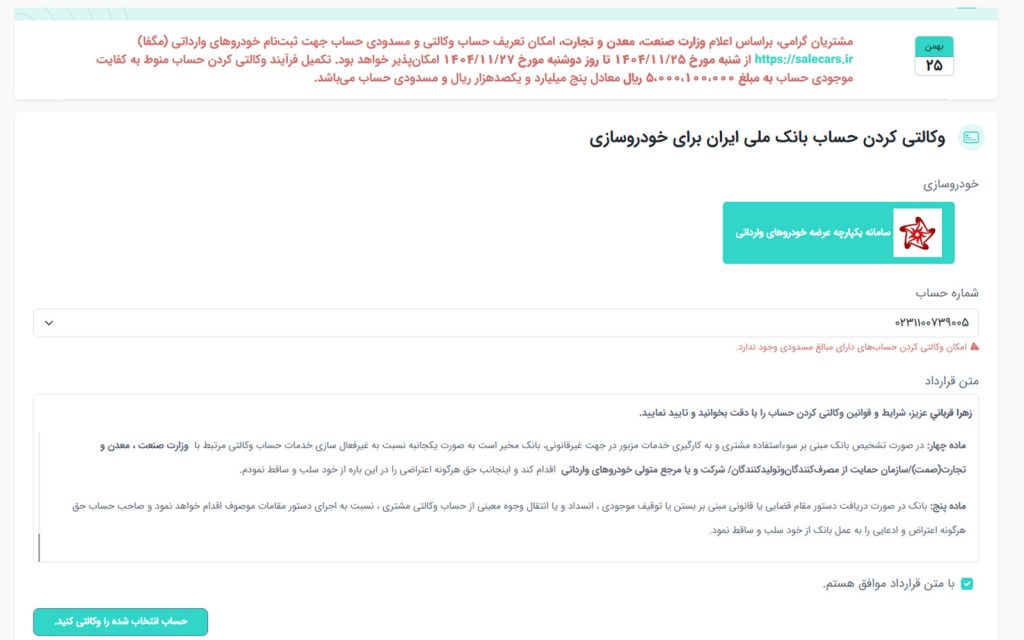 گام به گام وکالتی کردن آنلاین حساب برای ثبتنام خودرو وارداتی
