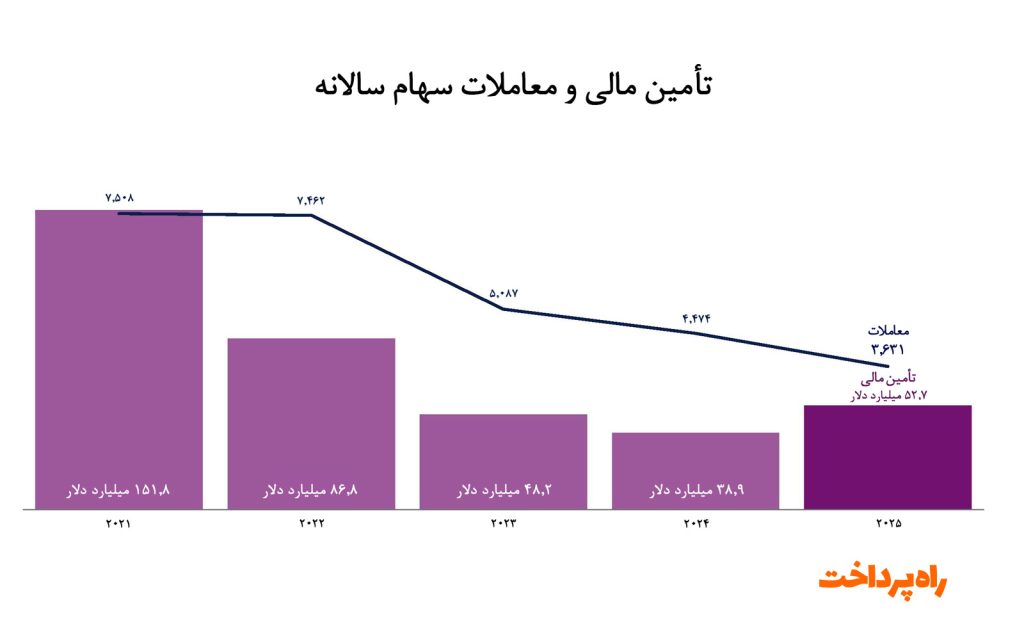تعداد معاملات سرمایه‌گذاری که در سال ۲۰۲۱ به بیش از ۵ هزار مورد رسیده بود، در سال‌های بعد روندی نزولی را طی کرد و در سال ۲۰۲۵ به حدود ۳ هزار معامله کاهش یافت. این کاهش نشان‌دهنده تغییر رویکرد سرمایه‌گذاران و افزایش احتیاط در تخصیص سرمایه است. در شرایط جدید، سرمایه‌گذاران بیشتر به دنبال شرکت‌هایی با مدل‌های کسب‌وکار پایدارتر و مسیر مشخص‌تر به سوی سودآوری هستند.
