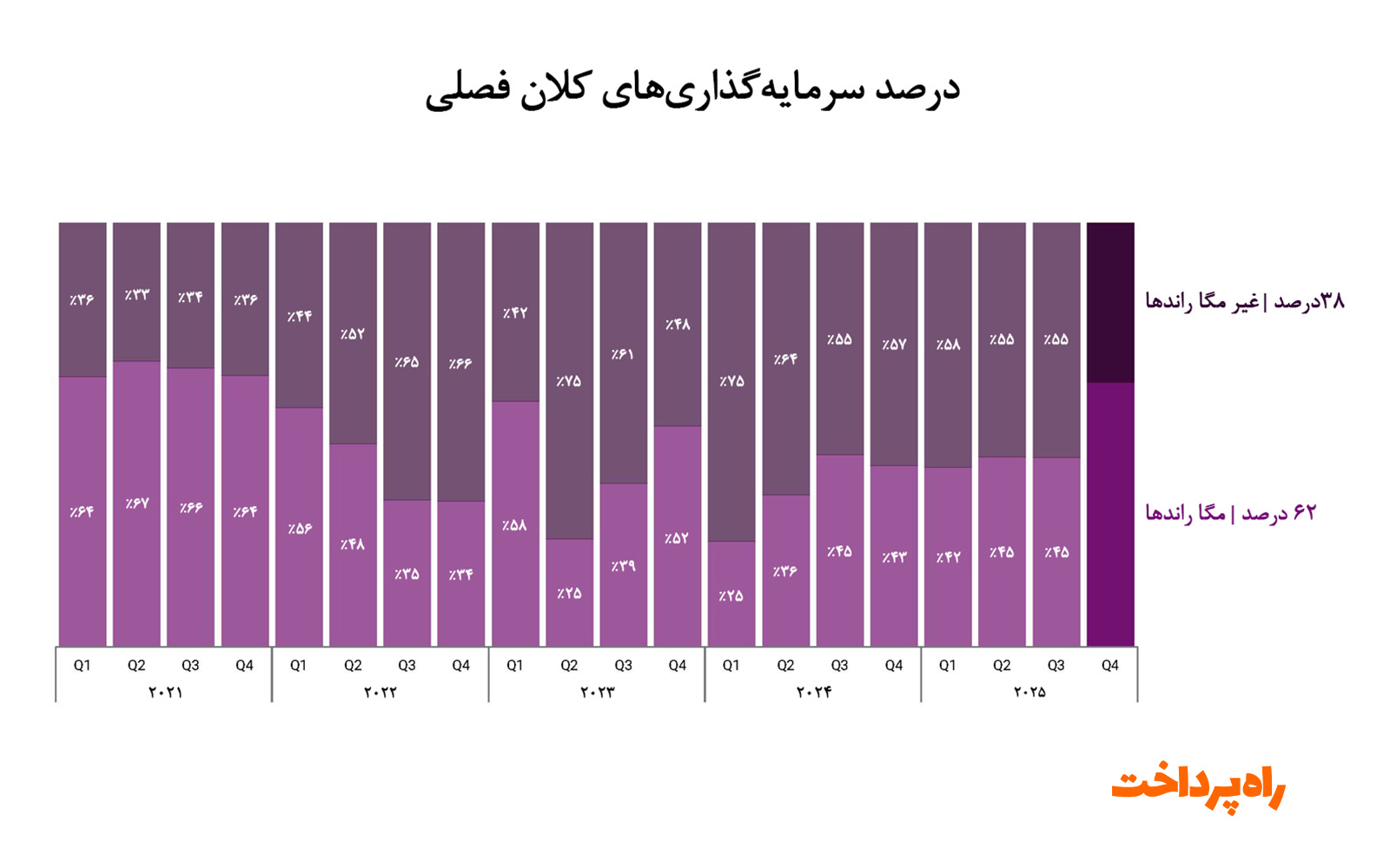 یکی از شاخص‌ترین نشانه‌های تغییر، تمرکز شدید سرمایه در تعداد محدودی از معاملات بزرگ است. در فصل چهارم سال ۲۰۲۵، ۶۳ درصد از کل سرمایه جذب‌شده تنها به ۲۹ معامله بزرگ یا «مگا راند» اختصاص یافت، در حالی که ۷۸۴ معامله دیگر برای سهم باقی‌مانده سرمایه رقابت کردند. این توزیع نامتوازن نشان می‌دهد که بازار دیگر به‌صورت گسترده از شرکت‌های متعدد حمایت نمی‌کند، بلکه سرمایه به‌طور فزاینده‌ای در اختیار شرکت‌هایی قرار می‌گیرد که توانایی جذب سرمایه‌های بزرگ را دارند.