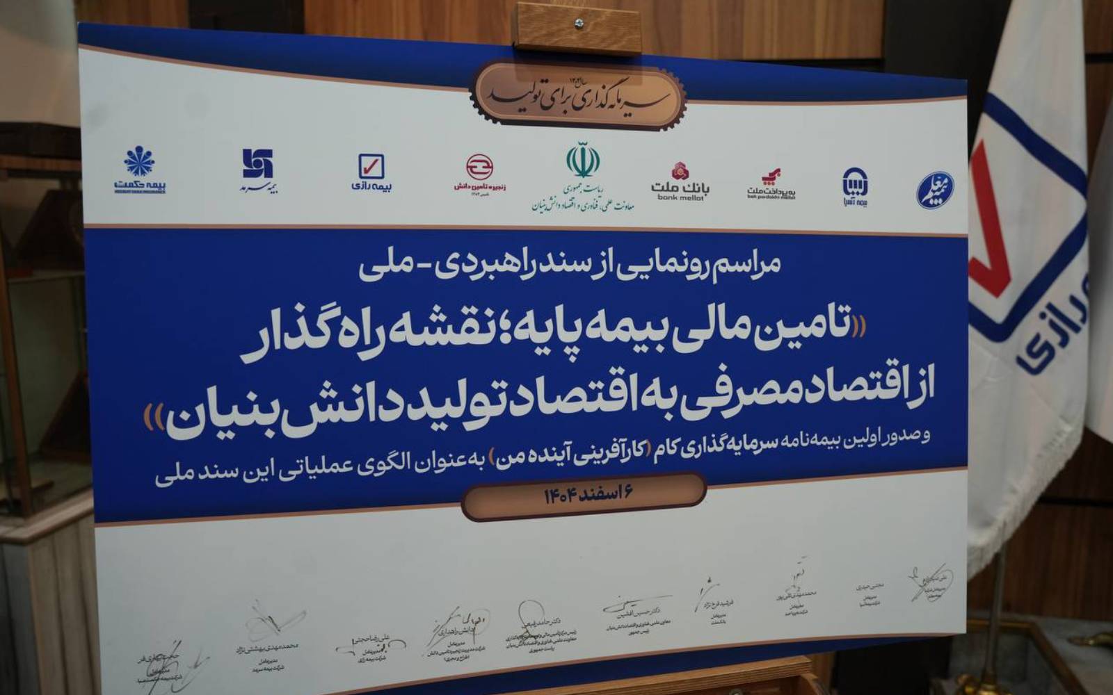 چهارشنبه، ۶ اسفندماه ۱۴۰۴ در مراسم رونمایی از سند راهبردی-ملی «تأمین بیمه پایه؛ نقشه راه گذار از اقتصاد مصرفی به اقتصاد دانش بنیان» با مشارکت بانک ملت، شرکت به پرداخت ملت و چهار بیمه کشور و همراهی معاونت علمی و فناوری نهاد ریاست جمهوری، اولین بیمهنامه سرمایه گذاری کام (کارآفرینی آینده من) صادر شد.