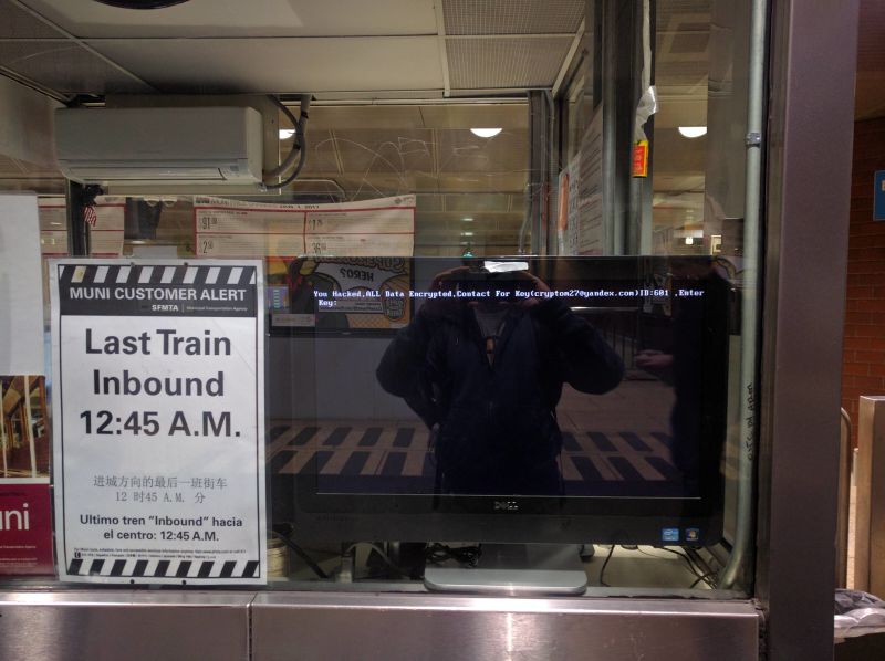 هکرهای مذکور با آلوده کردن رایانههای اداره حملونقل شهری سان فرانسیسکو، استفاده از قطارهای شهری را ناممکن کردند و برای فعال کردن قابلیت استفاده مجدد از آنها خواستار دریافت ۷۰ هزار دلار باج شدند.